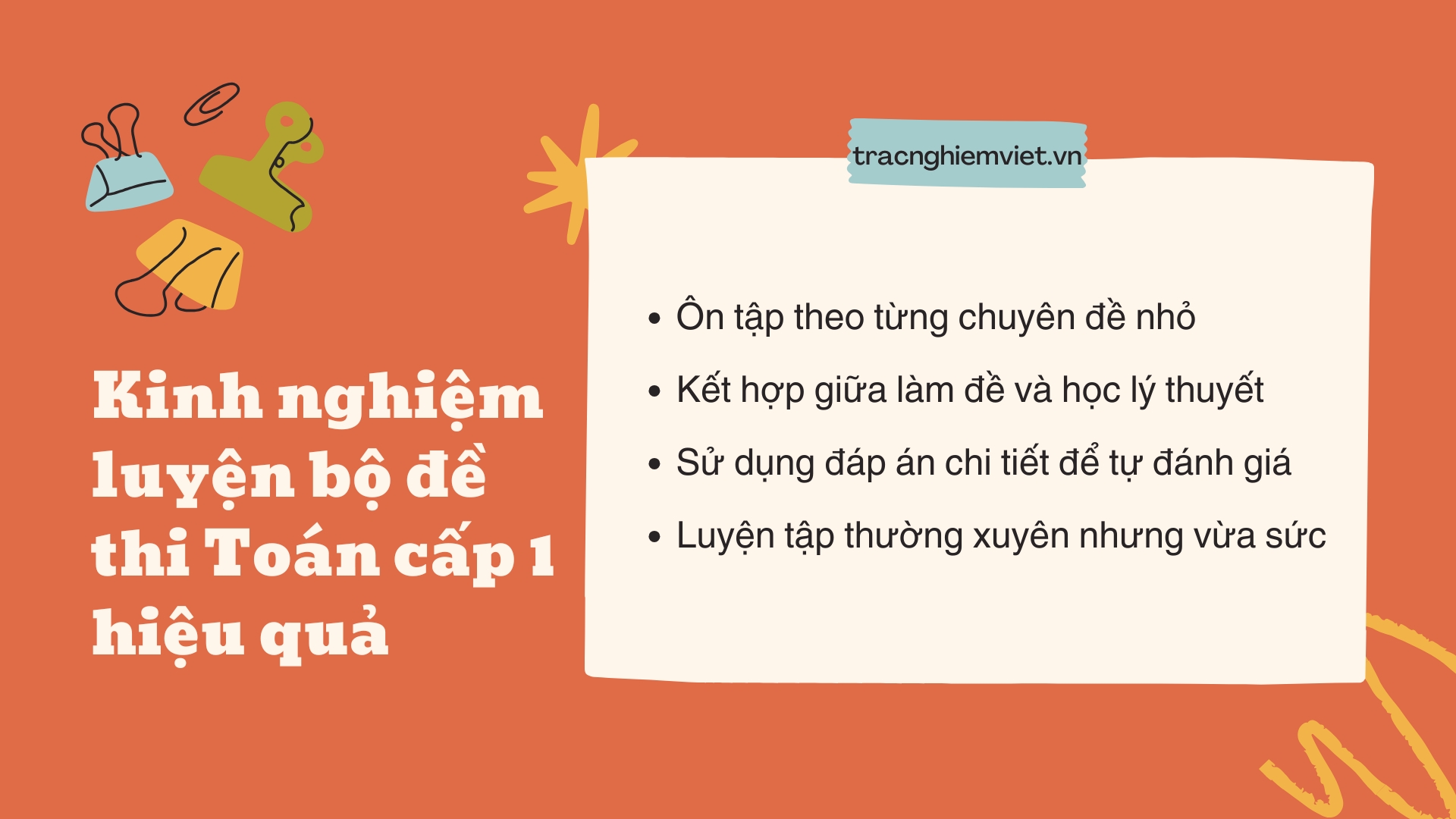 Làm quen với cấu trúc đề thi: Mỗi kỳ thi thường có bố cục tương tự nhau: trắc nghiệm, tự luận, bài toán có lời văn. Khi luyện đề, học sinh sẽ hình thành phản xạ tự nhiên.