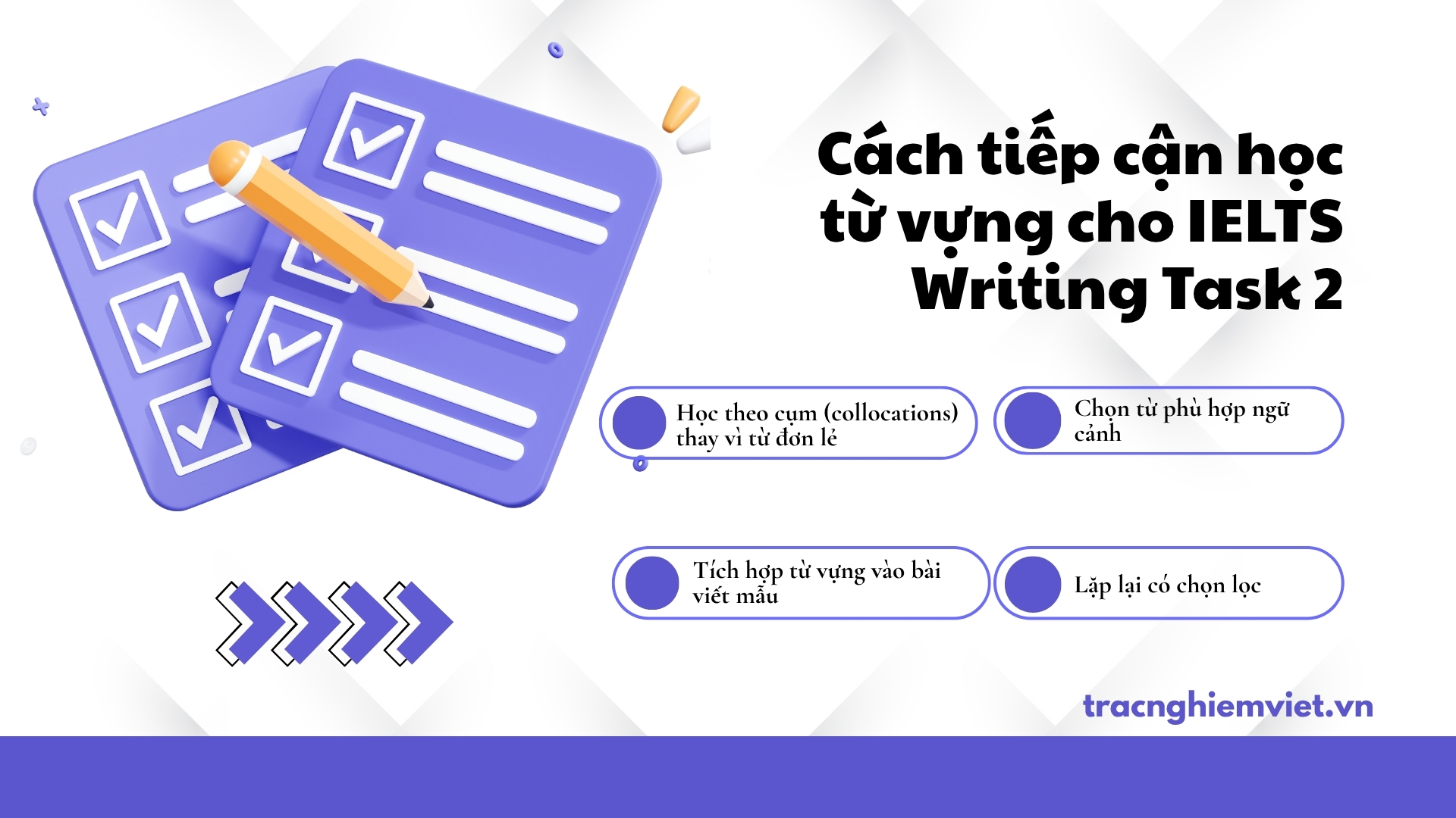 Trước khi đi vào từng nhóm từ cụ thể, bạn cần hiểu rõ nguyên tắc học từ vựng cho Writing Task 2:
