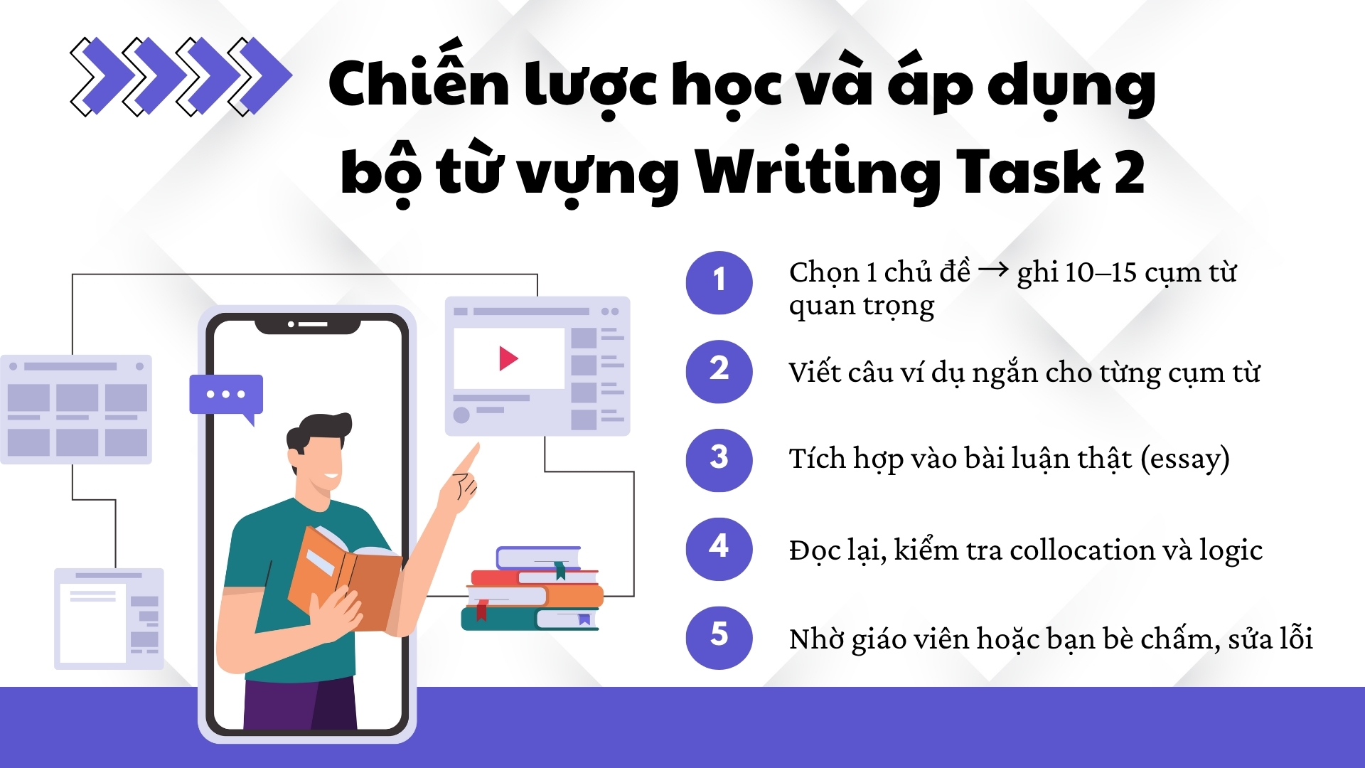 👉 Với cách học đúng, bạn không cần nhồi nhét quá nhiều mà chỉ cần khoảng 200–300 từ/cụm từ học thuật hay dùng nhất là đủ để đạt band cao.