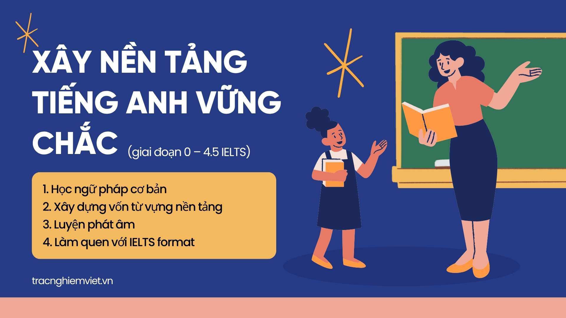 👉 Mục tiêu giai đoạn này: Đạt khoảng 4.5 IELTS, đủ kiến thức cơ bản để bước vào luyện thi chuyên sâu.