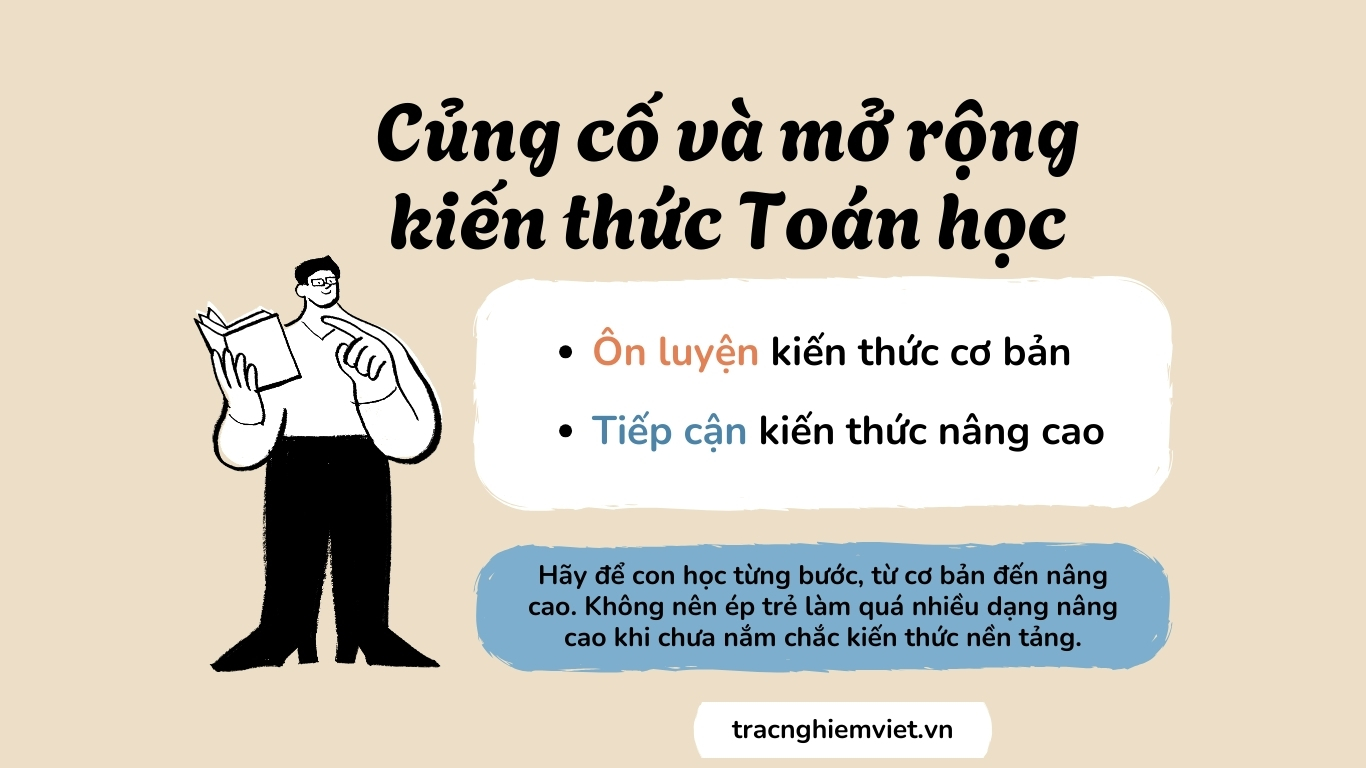 Hãy để con học từng bước, từ cơ bản đến nâng cao. Không nên ép trẻ làm quá nhiều dạng nâng cao khi chưa nắm chắc kiến thức nền tảng.