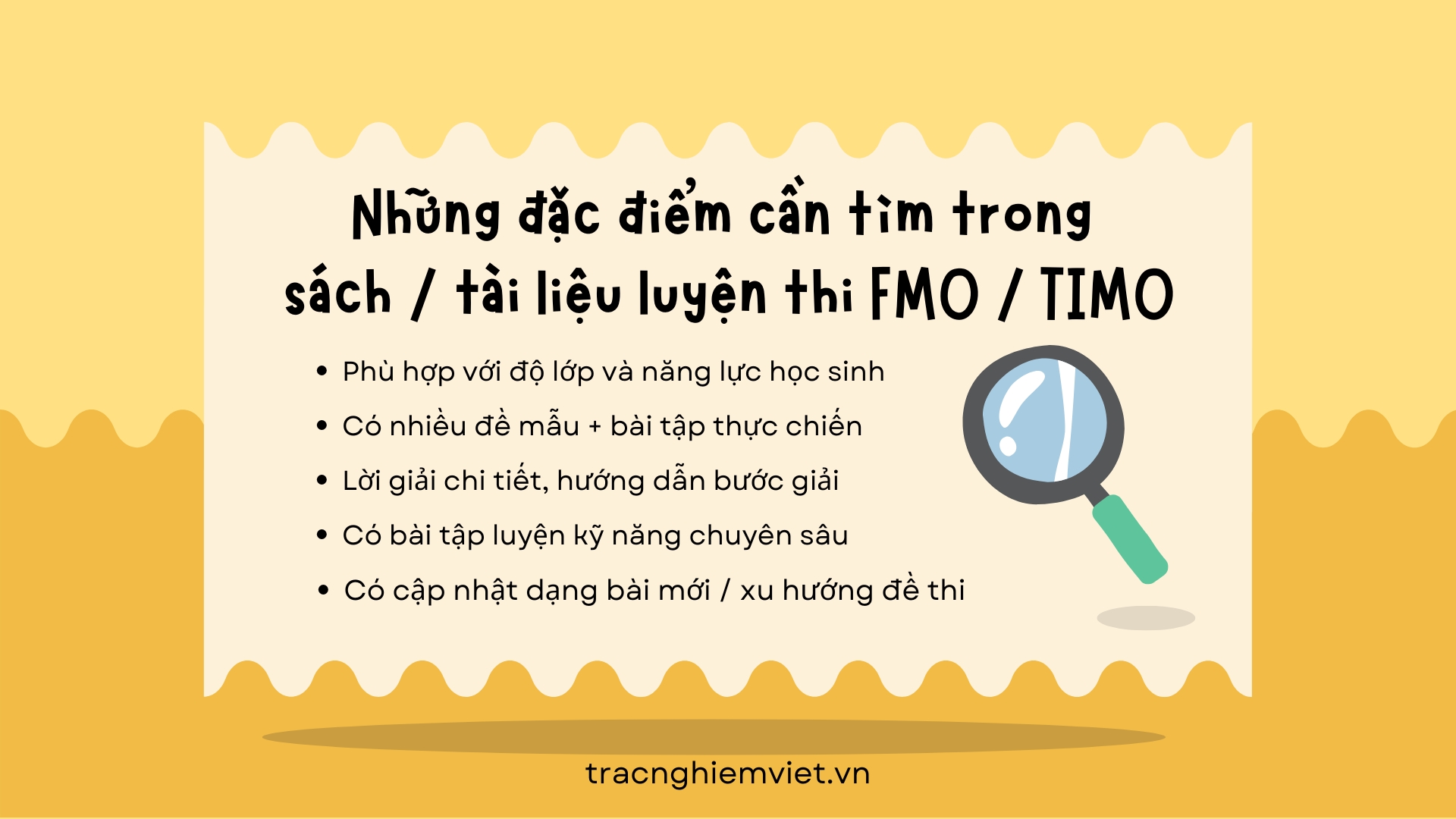 Khi chọn sách hoặc tài liệu để luyện thi FMO hoặc TIMO, không phải cuốn nào cũng phù hợp. Dưới đây là những tiêu chí bạn nên cân nhắc: